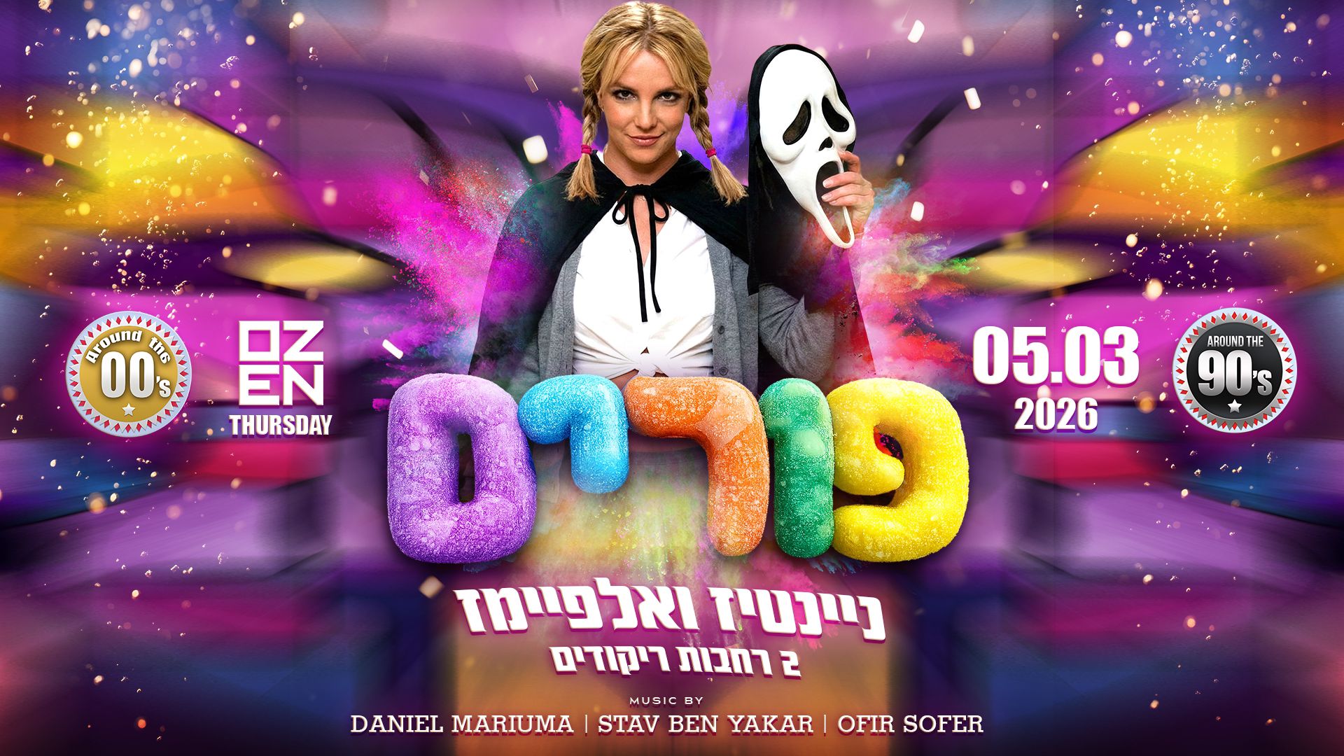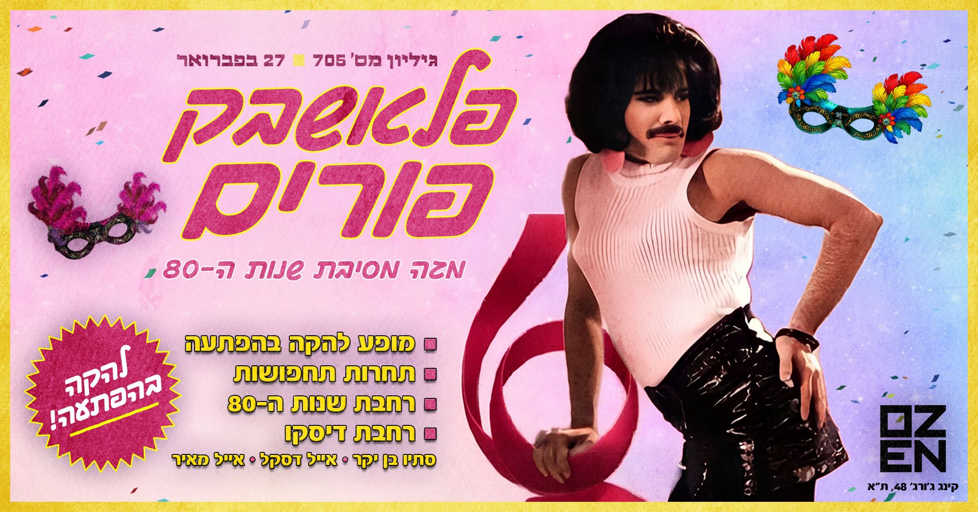 פלאשבק פורים מגע מסיבת 80 + מופע להקה בהפתעה